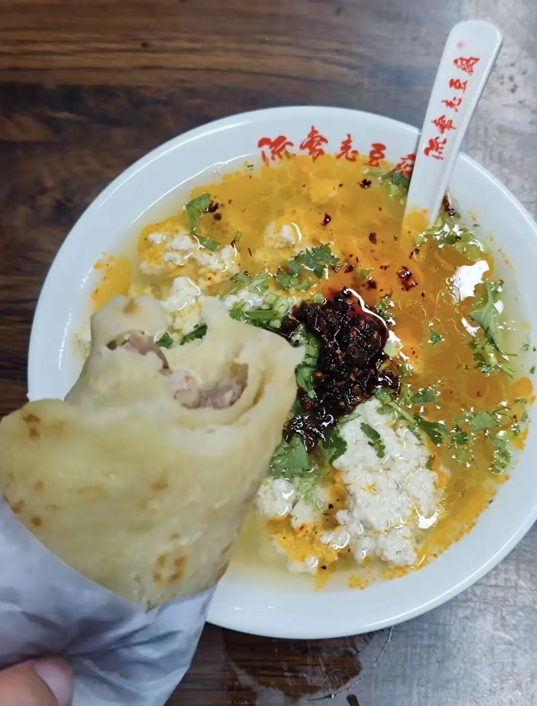 Также стоит упомянуть «Лючан лаодоуфу» — традиционный соевый творог с плотной, «старой» текстурой. Его вкус отличается легкой сладостью с едва заметной горчинкой и насыщенным ароматом соевых бобов. Обычно его подают с соусом из цветков шнитт-лука и чили-пастой, а едят вприкуску с лепешками, в которые завернута копченая грудинка — сочетание получается поистине уникальным. Мой дедушка обожал это блюдо больше всего на свете. Каждый раз, доев до конца, он довольно причмокивал: «Вот это я понимаю — настоящая еда!»